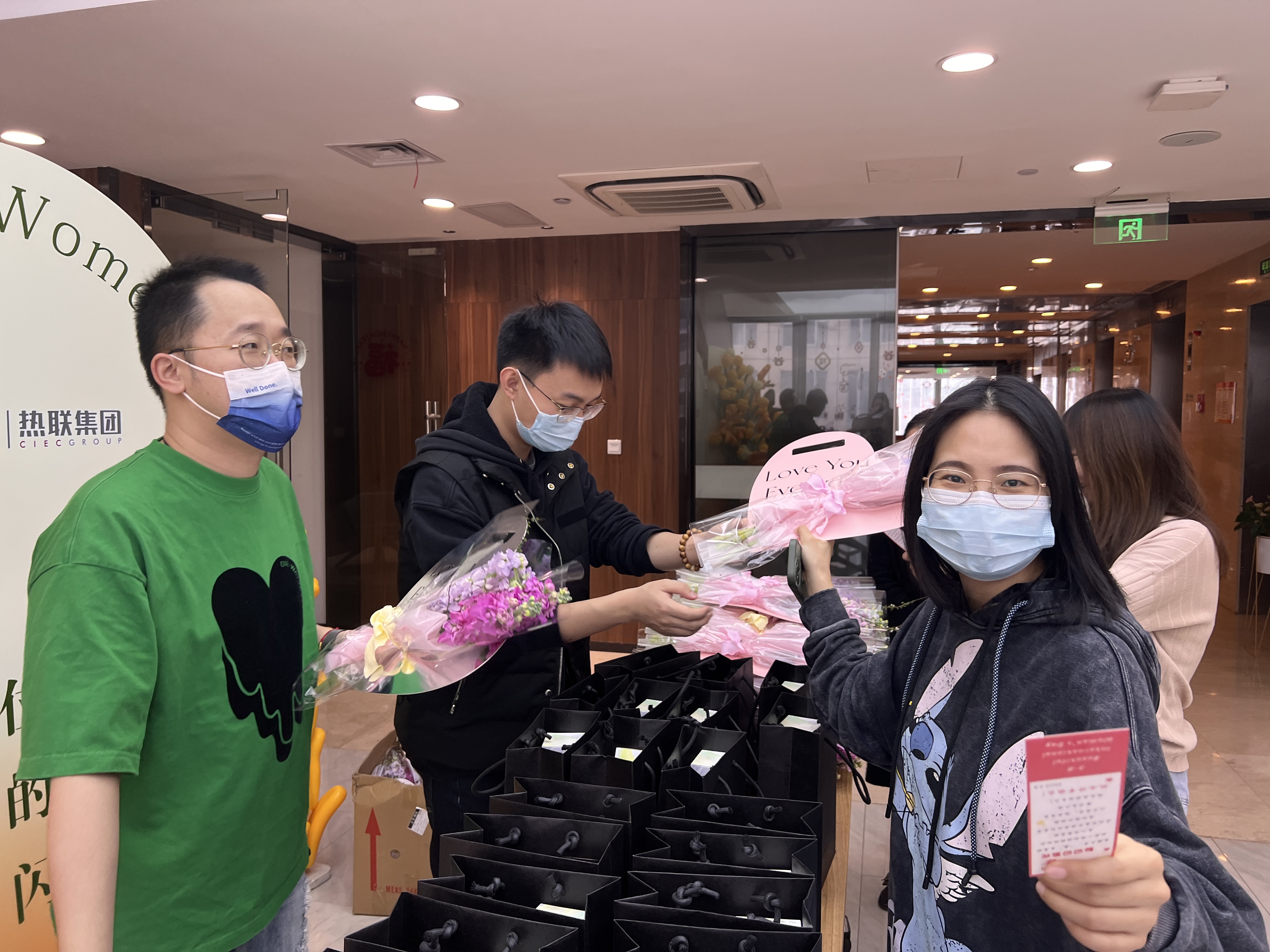 公司帅气的男同胞为女同事们送去了节日花束、节日祝福,还有专属定制的“遇见美好”小礼品。“你们真的太有心了,突然感觉今天的上班都变得有仪式感了。”一位热联女员工表示。