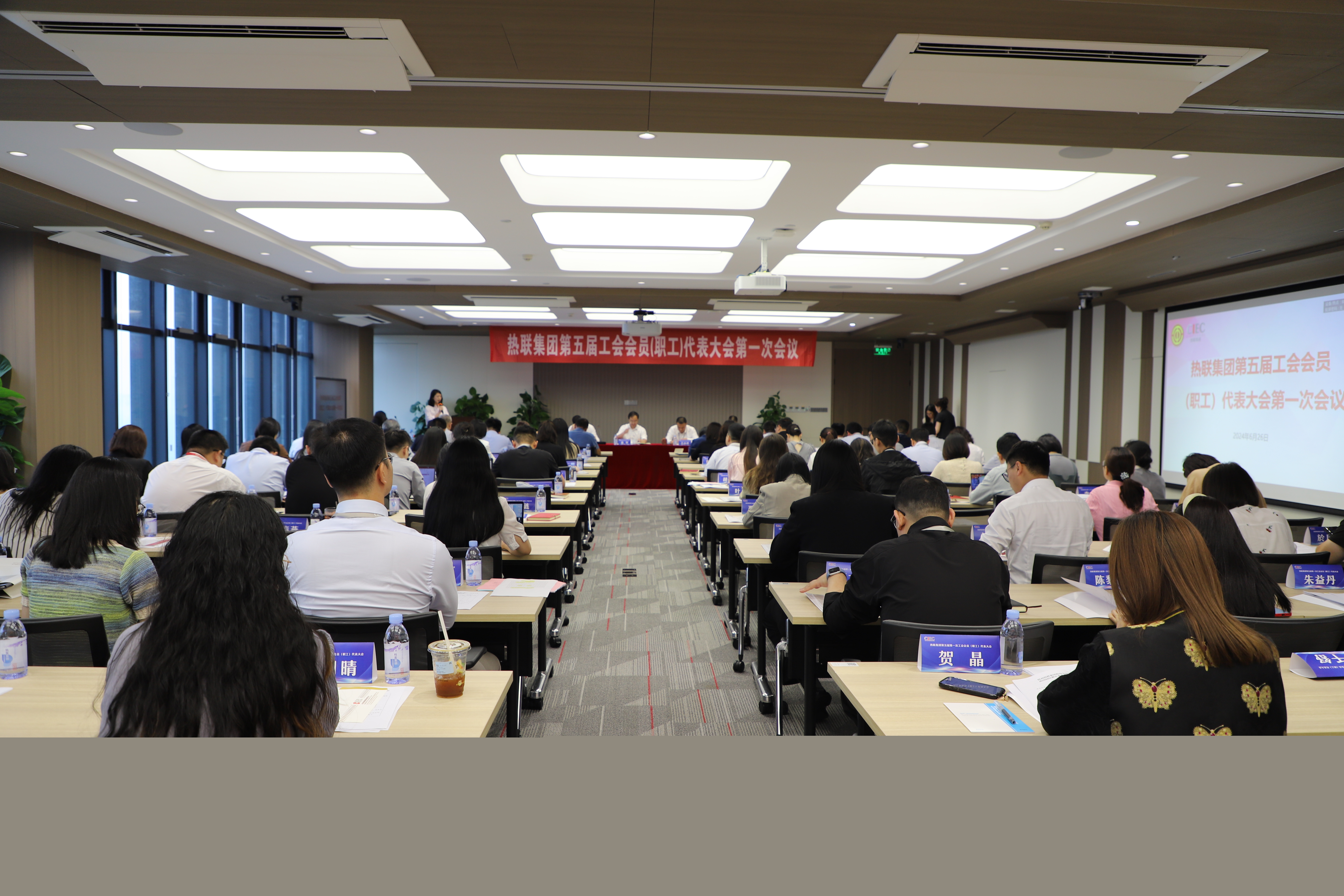6月26日下午,热联集团第五届工会会员(职工)代表大会第一次会议在汉嘉国际35楼会议室顺利召开。市工业工会主任潘坚莅临大会指导并讲话,热联集团总裁办公会成员、特邀代表、工会委员、经费审查委员会委员、全体会员(职工)代表参加会议。