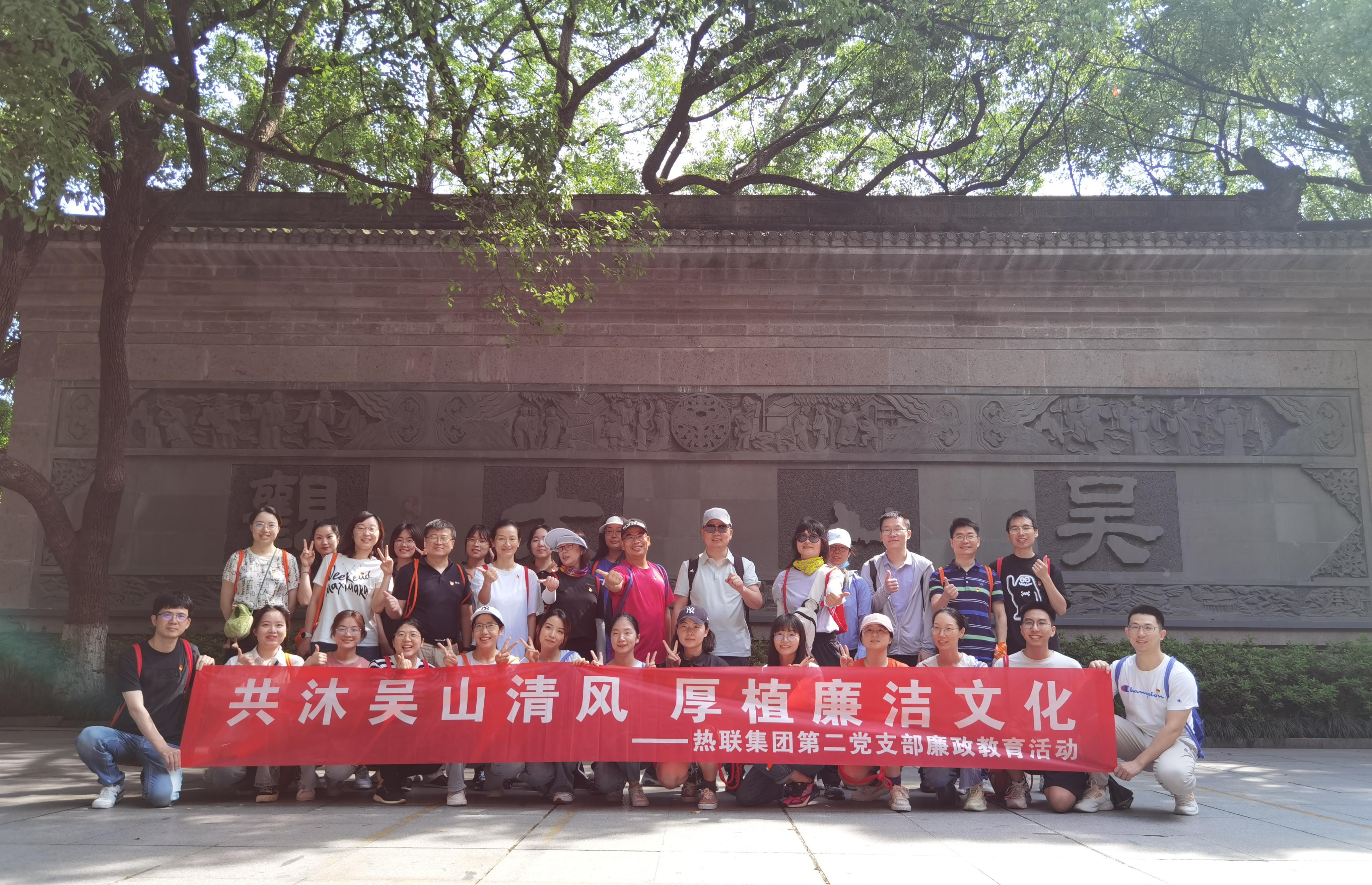为进一步推进支部党风廉政建设,提高党员廉洁自律意识,6月18日,热联集团第二党支部以“党建联盟”为载体,走近“老字号创新联盟体验点”——吴山清风廉政文化教育专线,开展“共沐吴山清风 厚植廉洁文化”党员教育活动。
